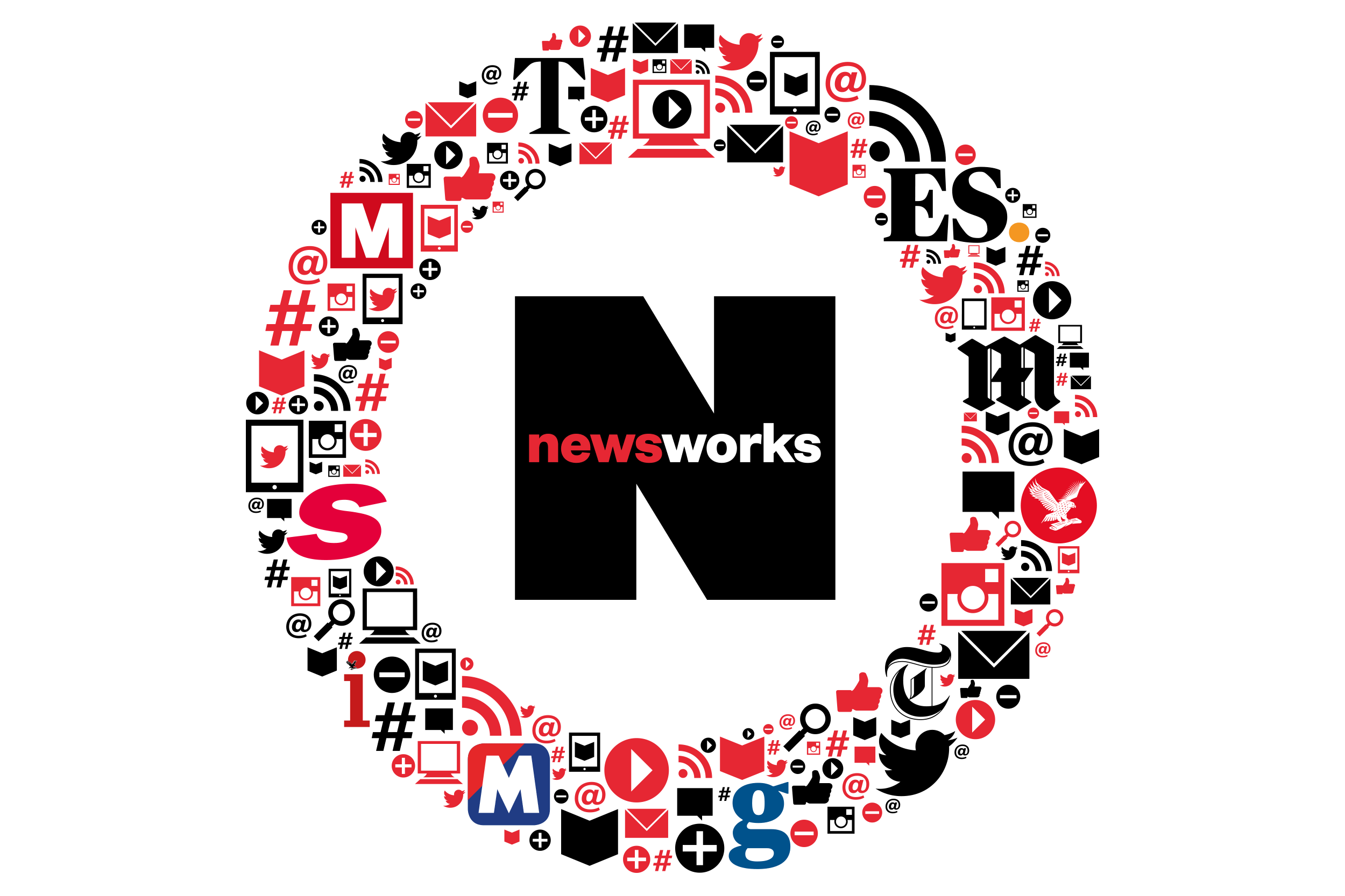 Newsworks is the marketing body for the UK national newsbrands. The 'halo' device was created to incorporate the body's stakeholders to the existing logo. Icons were used to create the halo effect and give the sense of togetherness.